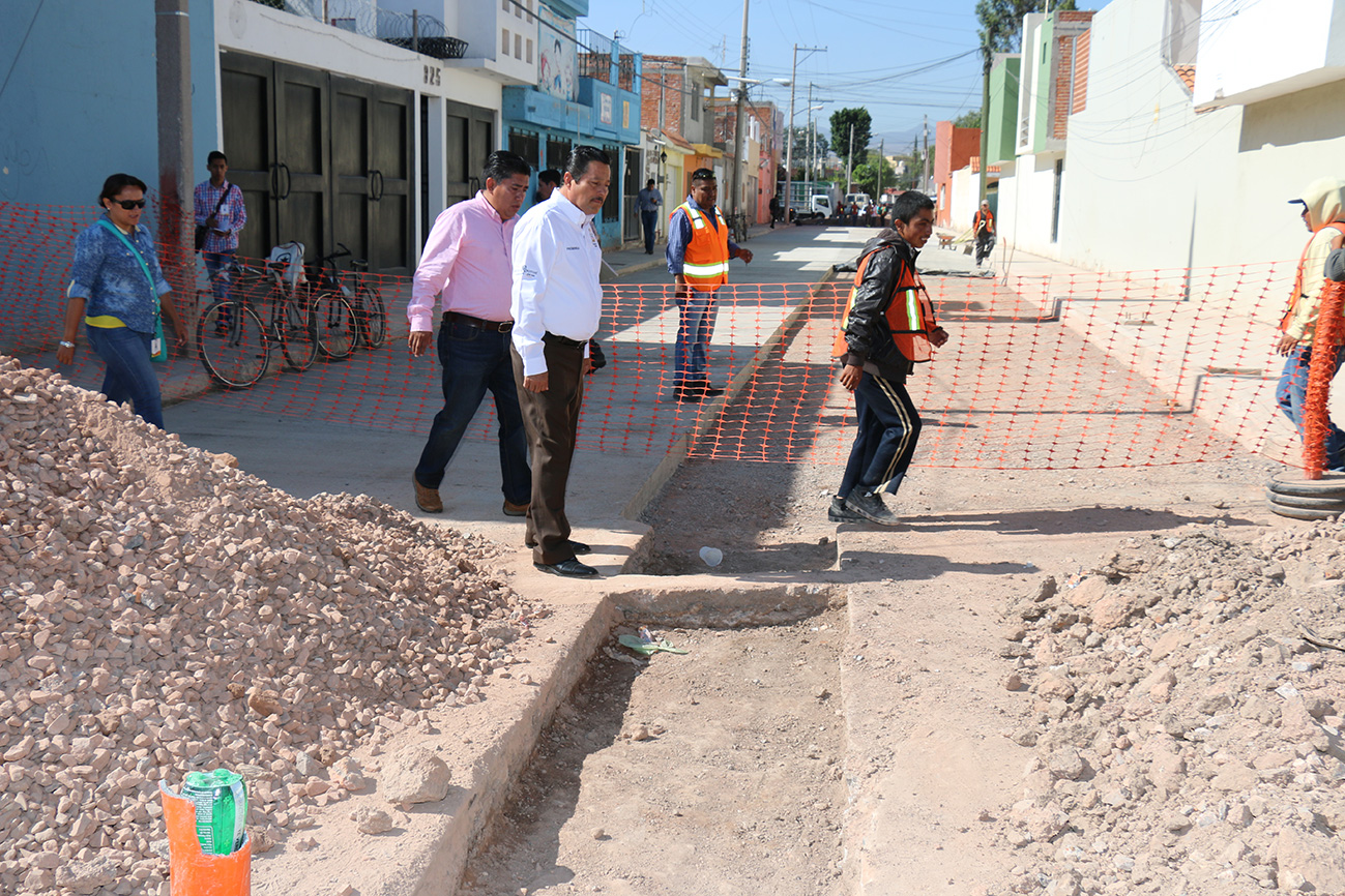 En la calle Mariscal, de la Colonia Los Reyes, constató la colocación de nuevas redes de agua y drenaje, así como de un superficie de concreto hidráulico de 15 centímetros de espesor, lo que garantiza la durabilidad de la obra.