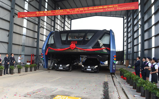 El transit elevated bus o TEB-1, movido por energía eléctrica, tiene 22 metros de largo, 7.80 de ancho y 4.80 de altura, con capacidad para transportar a 300 pasajeros, señaló un despacho de la agencia Xinhua.