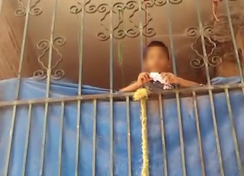 Al llegar al lugar, los policías encontraron al menor asomado entre las rejas del patio del inmueble. Manifestó llamarse Ángel y que se encontraba solo y sin comer desde hacía varias horas. También comentó que su madre lo deja todos los días en el patrio y lo amarra.
