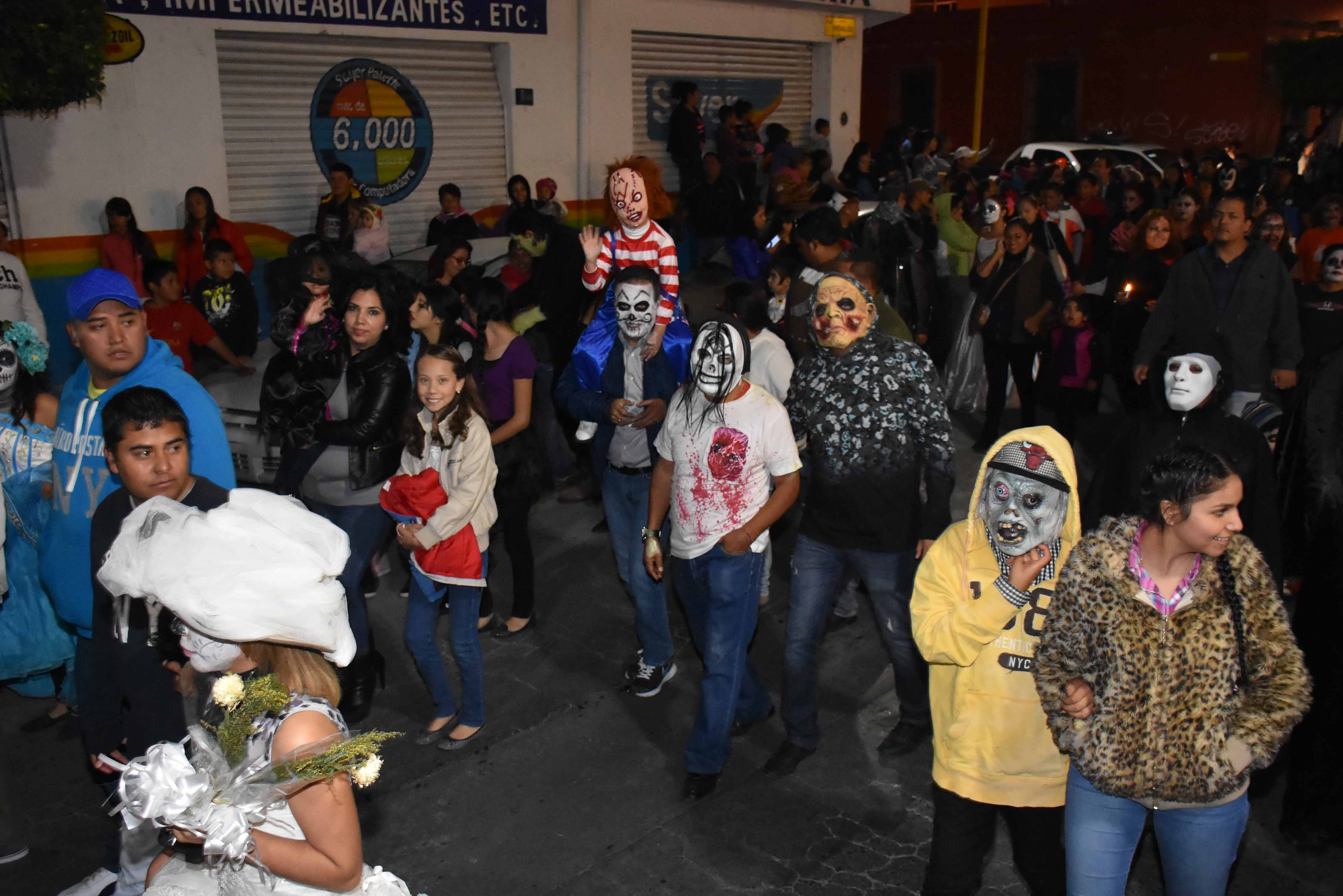 Esta noche, los “muertos vivientes” caminaron por las principales calles de Soledad de Graciano Sánchez, acompañados de criaturas terroríficas de todas las edades.