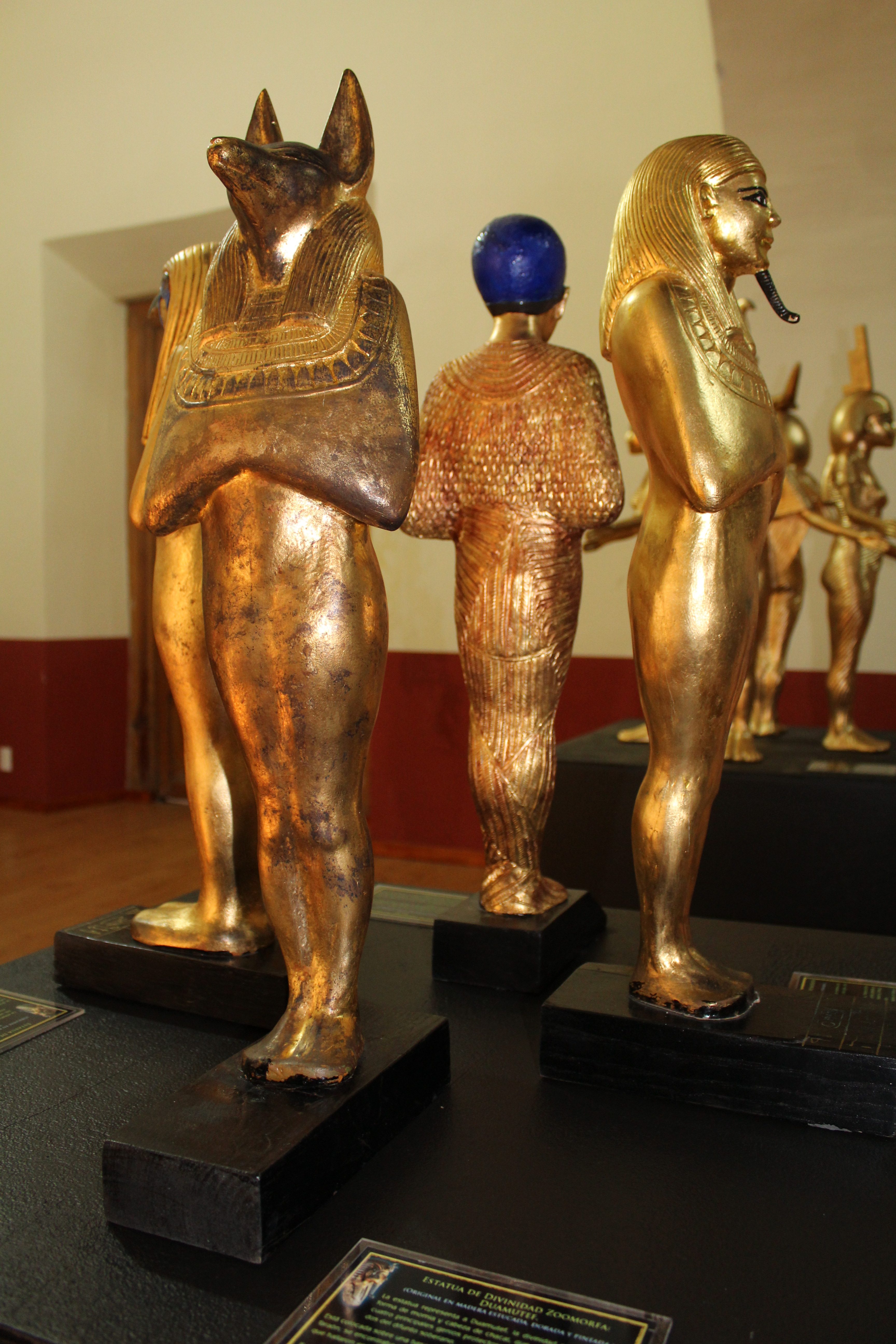 Igualmente se muestran las principales deidades de la mitología egipcia como Anubis, Horus, Isis, Osiris, Amón y Apis, entre otros, así como los procesos de embalsamado, momificación y rituales que realizaban los antiguos egipcios.