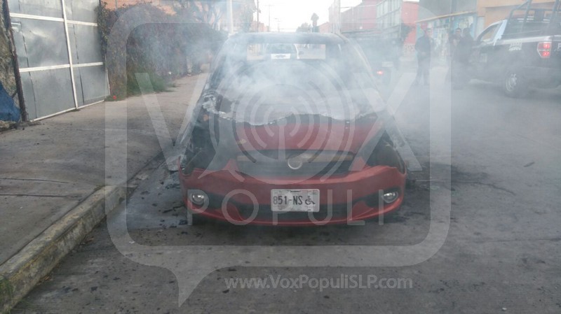 Un vehículo fue quemado por taxistas más tarde el cual se encontraba cerca de Avenida Juárez.