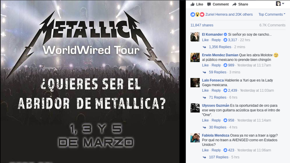 “Metallica quiere talento mexicano para que abra sus shows en la Ciudad de México”