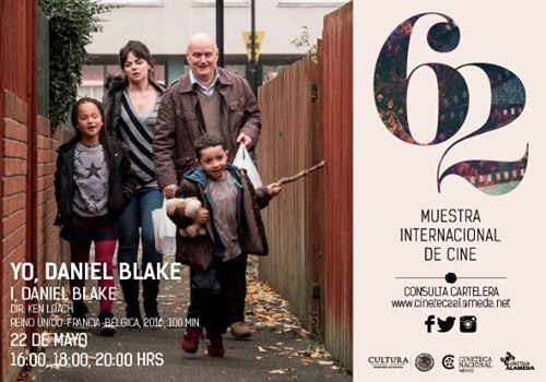 Se trata de la más reciente obra del reconocido Ken Loach, quien a lo largo de toda su carrera ha estado siempre del lado de las clases populares todo el mundo. Ésta película se proyectará el lunes 22 de mayo en tres funciones, a las 16:00, 18:00, 20:00 horas.
