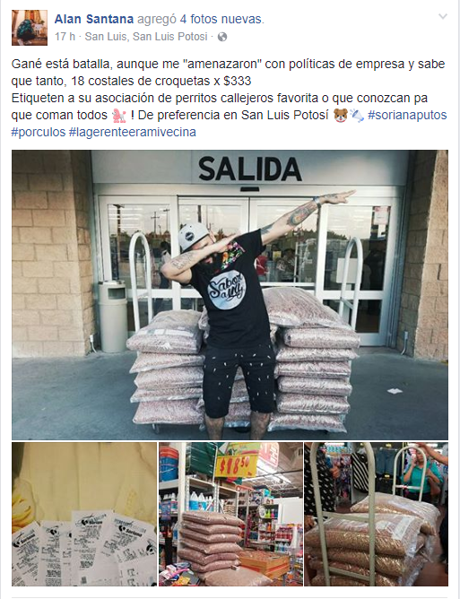 A la salida de la tienda, se tomó una fotografía posando victorioso sobre esta compra. Sin embargo aclaró que su intensión será la de regalar dicho alimento a organizaciones defensoras de los derechos animales, así como perros callejeros.
