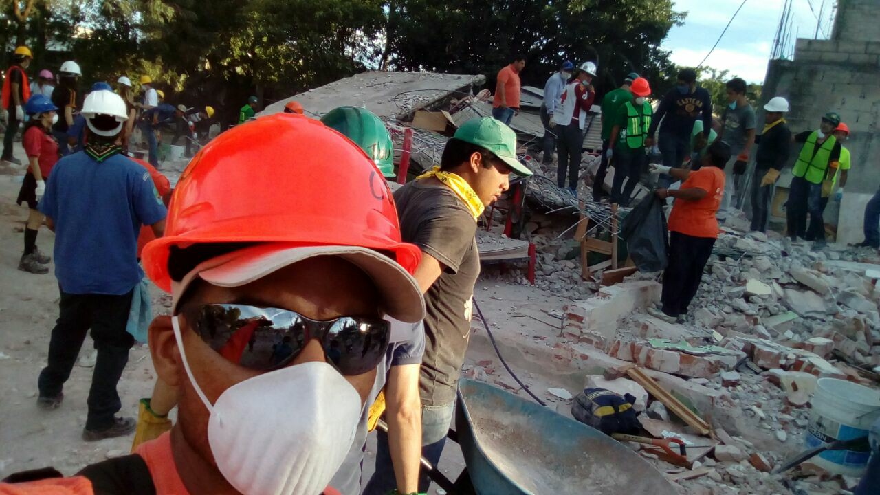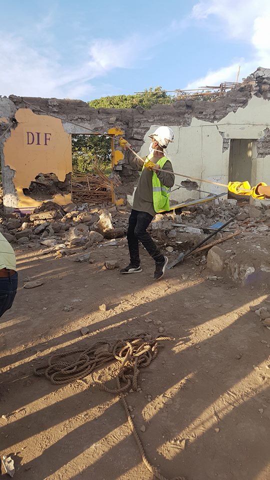 Uno de ellos lamentablemente sufrió la picadura de un alacrán mientras removía escombros, sin embargo nos informan que se encuentra de momento en el hospital con reporte de salud positivo.