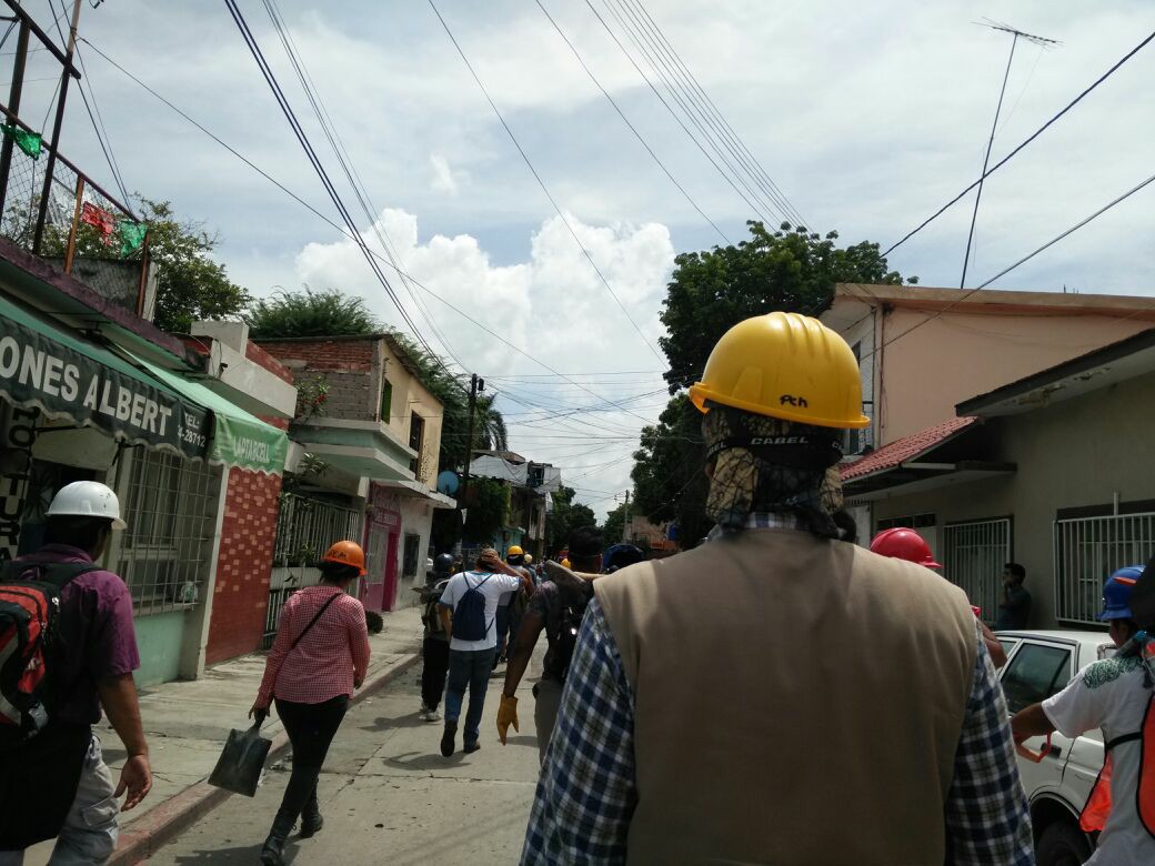 Los jóvenes se encuentran poyando a diversas comunidades Jujutla de Juárez y Alpoyuca, donde remueven escombros y derriban estructuras que son un peligro para los habitantes.