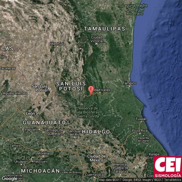 La intensidad del terremoto fue de 4 grados en la escala de Richter justo a las 23 hrs con 34 minutos de este 12 de septiembre, a una profundidad de 10 km del punto descrito, por lo que en la capital potosino fue desapercibido.