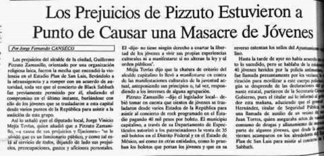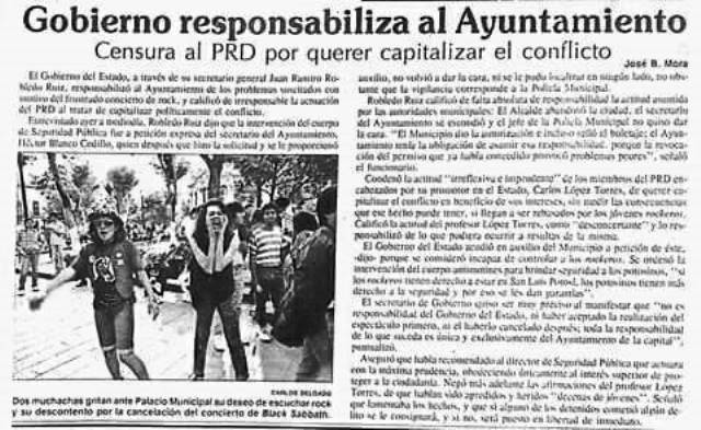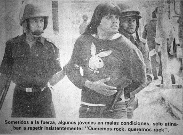12:00 Hrs. aproximadamente, regresamos al lugar donde ya era un total desmadre entre gente, banda, polis, reporteros y demás, como llegamos ya solo 4 en el carro y con todo el inche coraje encima, ni cuenta nos dimos cuando nos rodean los polis y para abajo, nos quitaron mi grabadora, chelas, morrales con cassets, nos subieron a punta de golpes a una camioneta donde ya tenían más banda y durante el trayecto puros toletazos.