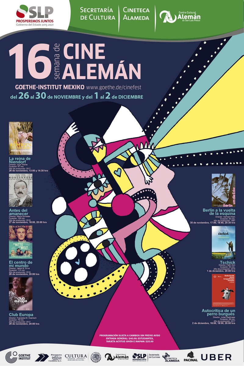 Todo esto es posible gracias al generoso apoyo del Patronato de la Industria Alemana para la Cultura, el cual ha respaldado desde sus inicios al proyecto de la Semana de Cine Alemán, así como la colaboración del Goethe-Institut Mexiko y la Secretaria de Cultura del Gobierno del Estado de San Luis Potosí.