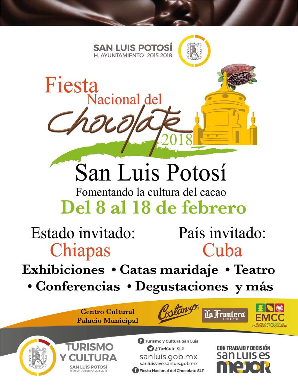 Fueron seleccionados como invitados el estado de Chiapas y la isla de Cuba, lo que refrenda la apertura internacional de la “Fiesta Nacional del Chocolate” que desde su primera edición buscó trascender las fronteras y promover el chocolate mexicano y potosino en otros mercados.