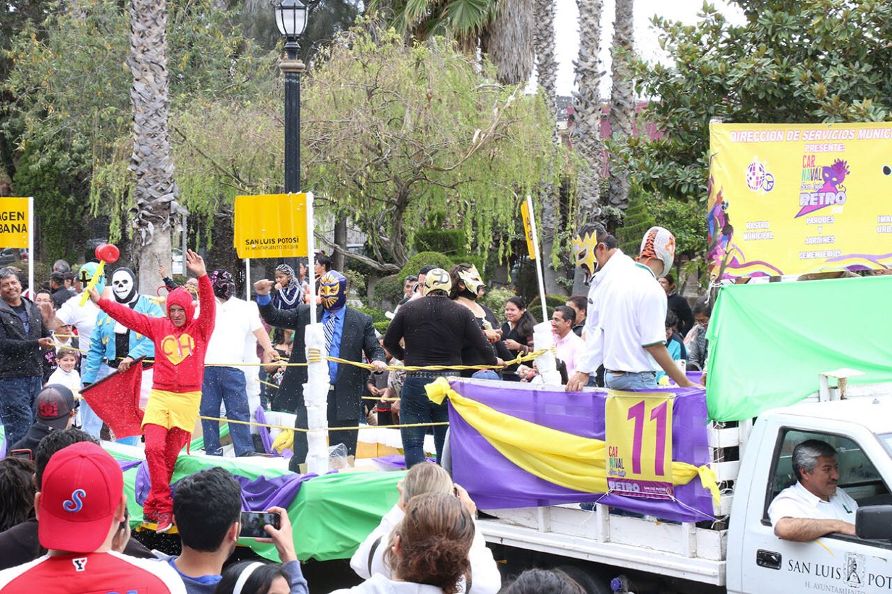 Con un festivo, colorido y muy exitoso “Carnaval Retro San Luis 2018”, el Ayuntamiento de la capital vistió de alegría la ciudad, en la que miles de familias potosinas y visitantes apreciaron los más de 25 carros alegóricos y se divirtieron con las 40 comparsas que se unieron como parte de esta tradición que anuncia la llegada de la Cuaresma.