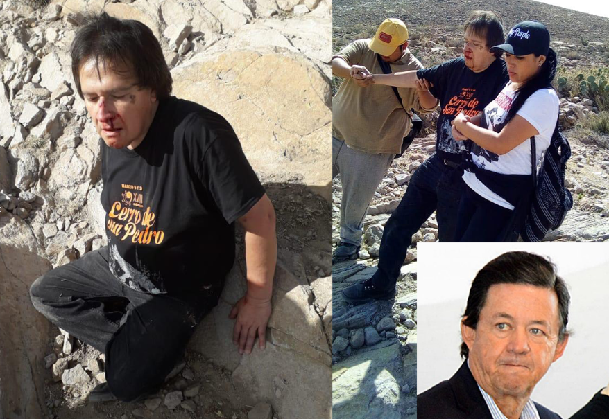 El día 23 de febrero de 2019 aproximadamente a las 10:20 de la mañana cuando se realizaba el Primer Recorrido/Excursión a la Sierra de San Miguelito, en la que se desarrollaban temas ambientales y de defensa territorial por parte de Comuneros de San Juan de Guadalupe que se oponen al proyecto inmobiliario de Carlos López Medina, el Licenciado y activista ambiental Carlos Covarrubias fue agredido por un numeroso grupo de personas armadas con machetes afines al proyecto inmobiliario, le provocaron lesiones sin lograr cumplir el objetivo, debido a que las personas que acompañaban el recorrido impidieron parcialmente la agresión, en estos momentos el compañero se encuentra recibiendo atención médica en un hospital donde es valorado y posiblemente sometido a cirugía, lo anterior fue informado por los Comuneros Noel de la Rosa Bravo, Tomás Jasso Menchaca, Aniceto Jasso Bravo, José Luis García Granja así como asesores de diversos grupos como el Doctor Enrique González Ruiz y Tomás Estrada.