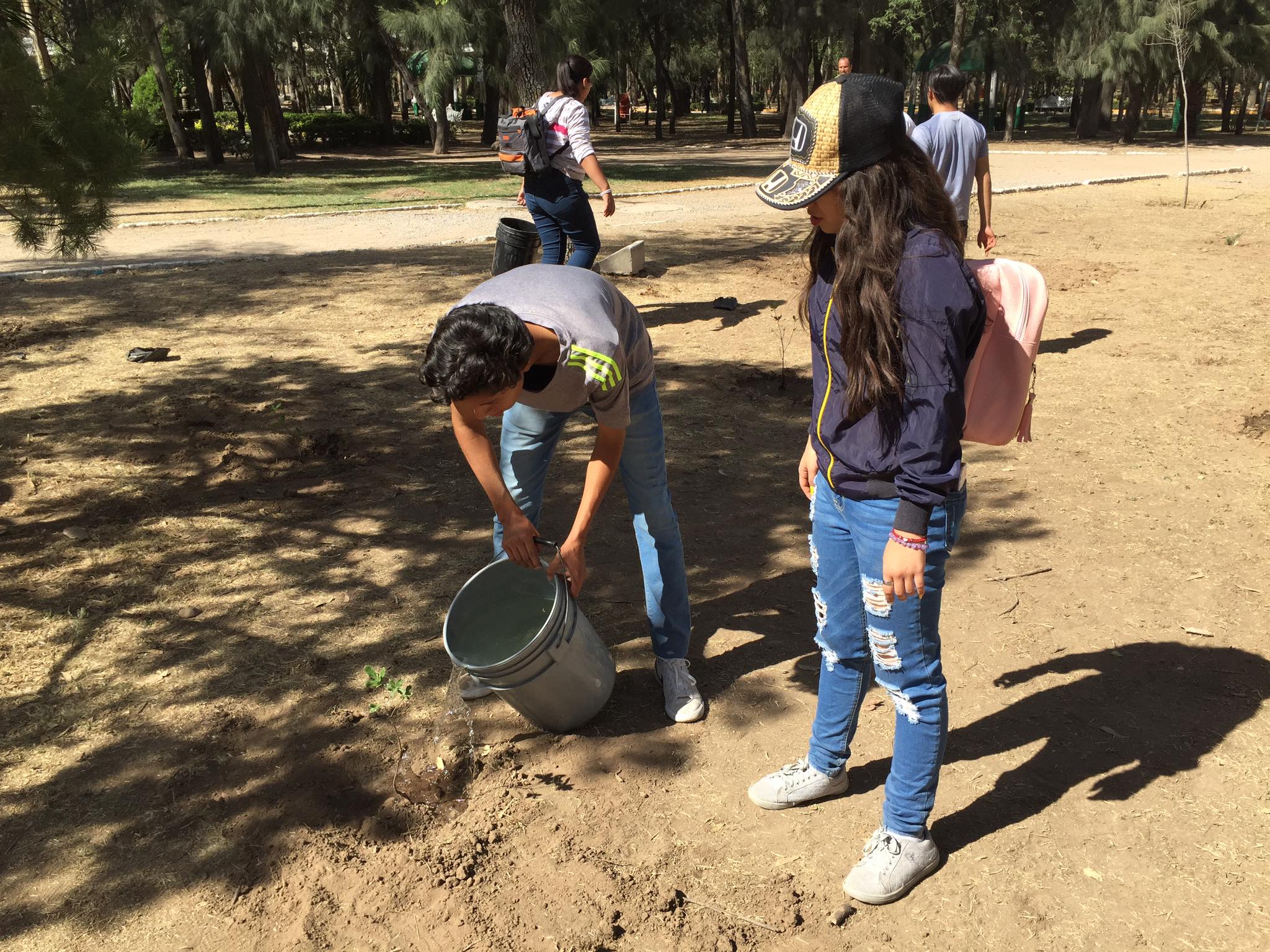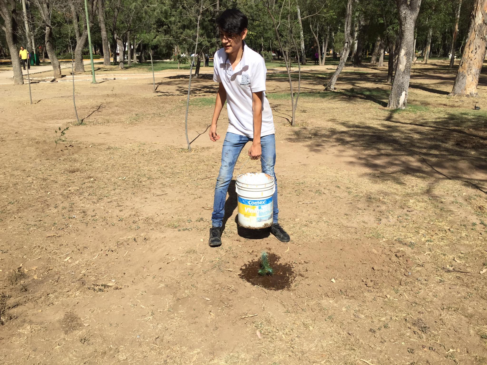 SLP.-Cerca de 70 alumnos del Instituto Lasalle de San Luis, así como integrantes de la Asociación Civil Proferestal, se unieron este viernes para reforestar el Parque Morales.