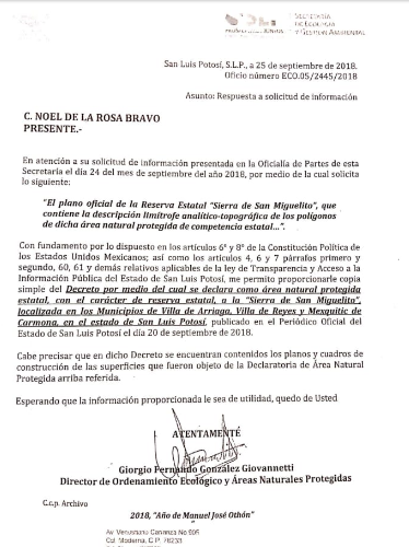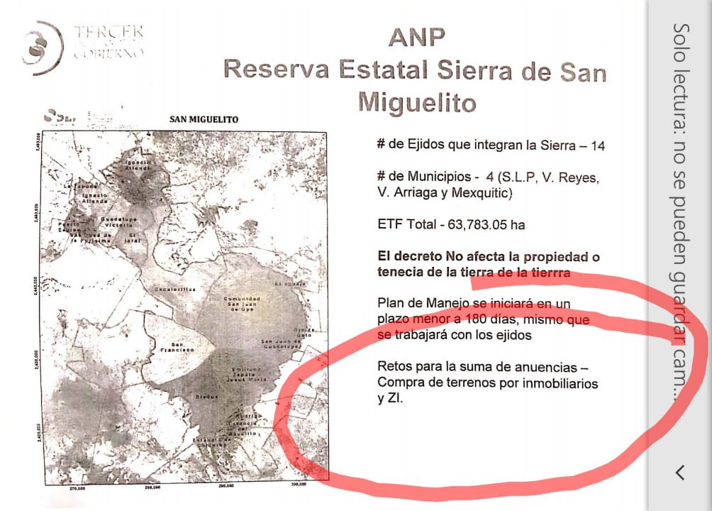 A pesar de la negación por parte de las autoridades, reconocieron en documentos oficiales del Tercer Informe de Gobierno de Juan Manuel Carreras, la oprobiosa pretensión de “vender” el patrimonio natural de los potosinos.