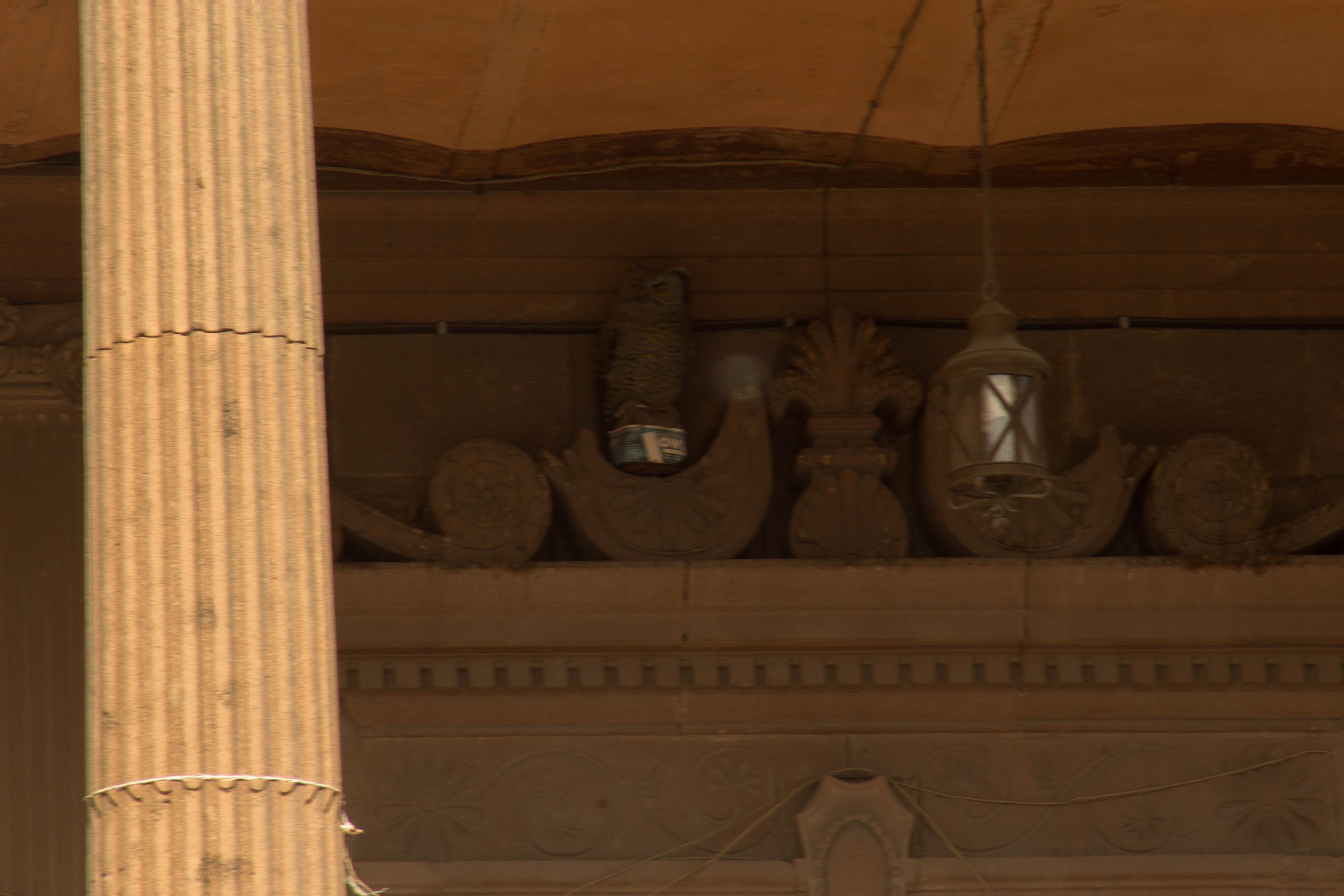 La  realidad es que fueron colocados para proteger al edificio de las palomas, ya que las ahuyenta evitando así que dañen la estructura del edificio. Los búhos son de plástico y aunque llaman la atención de las aves, también despiertan la imaginación de muchos.