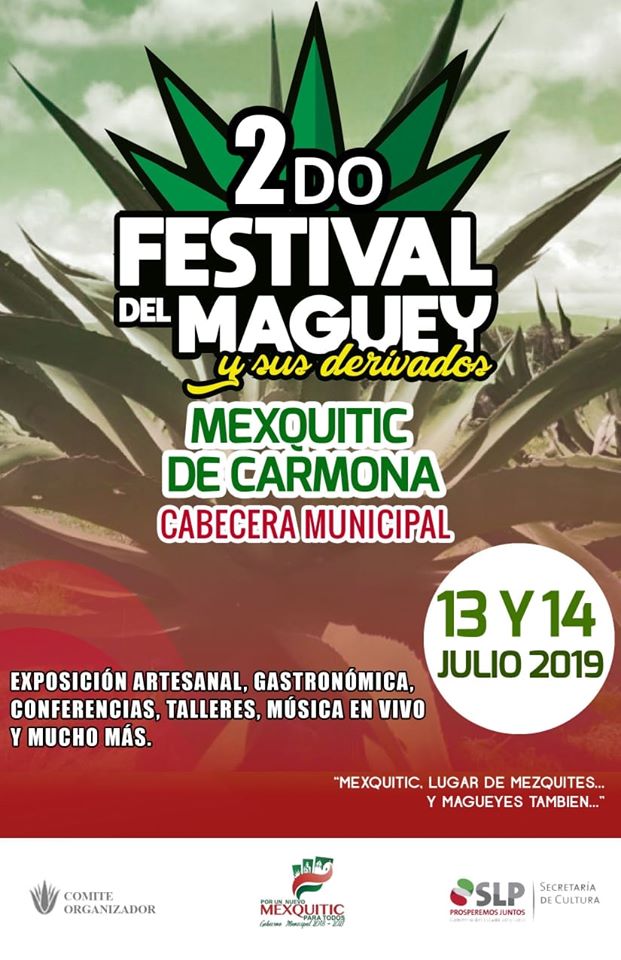 SLP.- Se realizará el segundo Festival del Maguey sus derivados en el municipio de Mexquitic de Carmona , este próximo 13 y 14 de julio.
