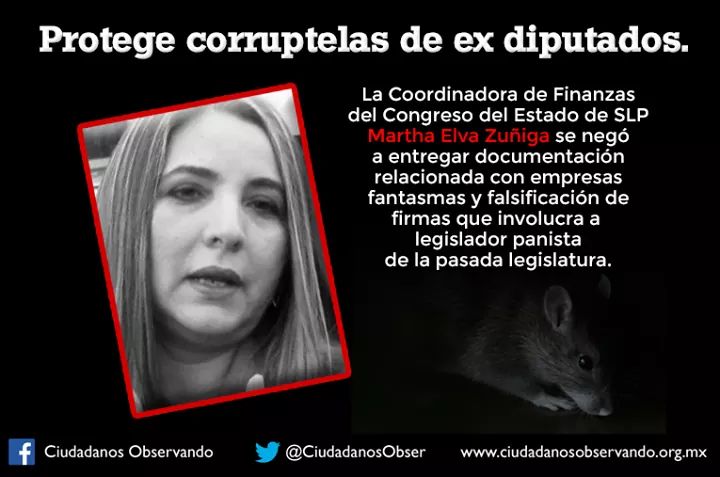 Colocada como Coordinadora de Finanzas precisamente para obstruir y encubrir Martha Elva Zuñiga Barragán al detectar que se trataba de un ex legislador panista negó la información bajo los argumentos más ridículos, argumentando que se tenía que informar con precisión la fecha en que se entregó ese supuesto apoyo. Ya existe la respectiva queja ante la Comisión Estatal de Garantía de Acceso a la Información Pública ( CEGAIP ) y aunque nos tardemos un tiempo en este proceso, tarde que temprano por ley obtendremos la información solicitada pero queremos denunciar públicamente la obstrucción a la información pública que debería ser entregada sin problemas por esta funcionaria.