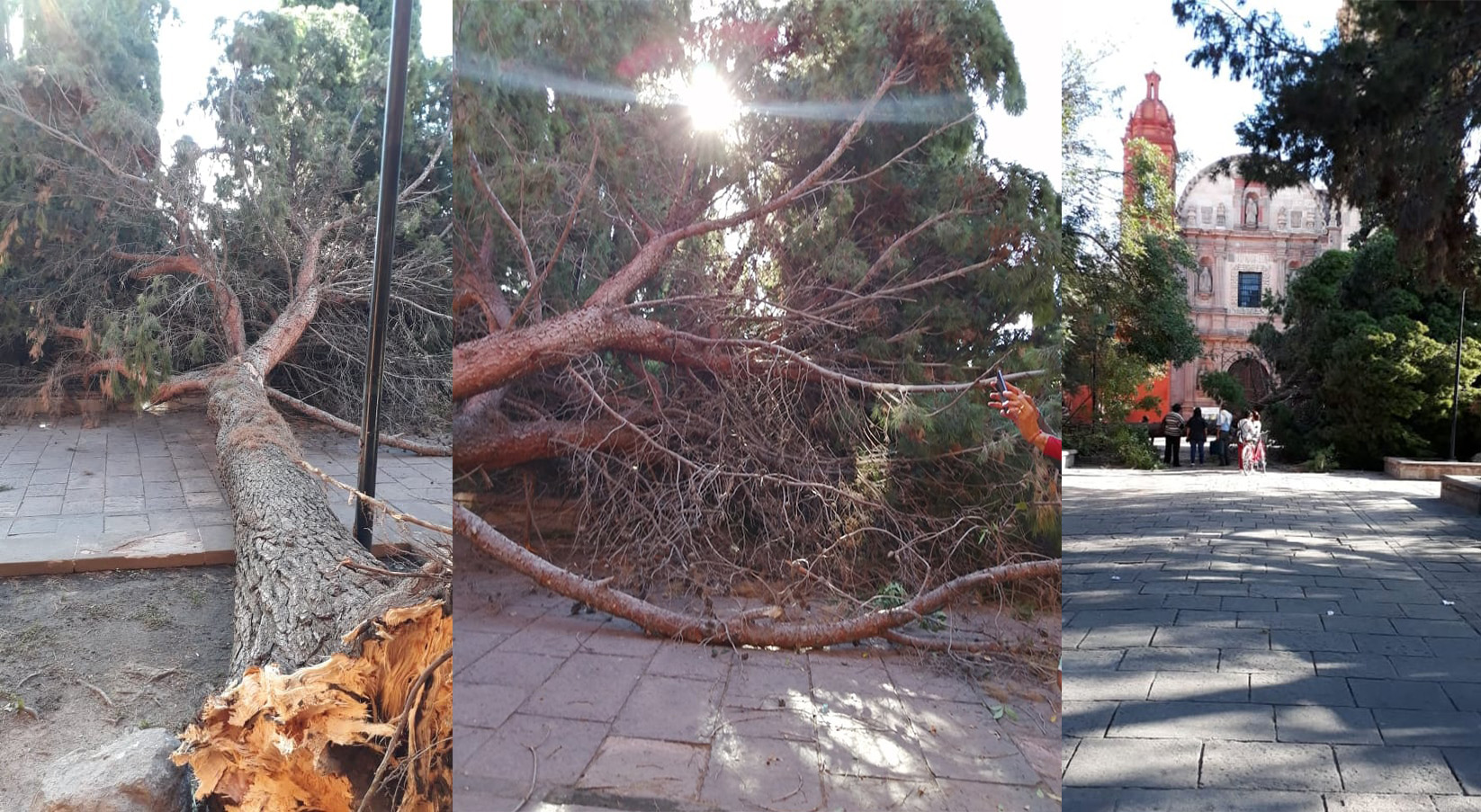 Los hechos ocurrieron cerca de las 17:00 hrs cuando un estruendo alertó a los visitantes y vecinos. El inmenso árbol habría caído sobre una banca y bloqueado el paso a la entrada principal. De inmediato la gente comenzó a revisar si ninguna persona había quedado atrapada bajo la banca, pero por fortuna no se encontraba nadie ahí y ninguna persona resultó lesionada.