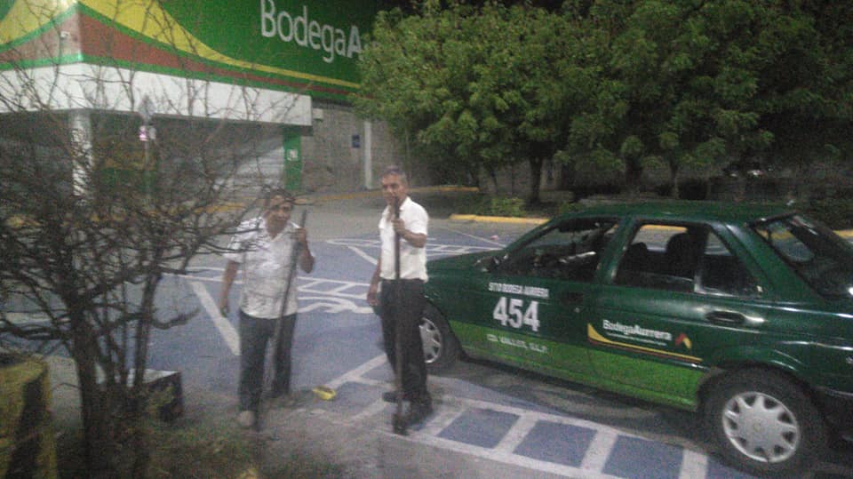 Relató que el había dejado estacionado su vehículo en un Aurrera y en la noche cuando se disponía a recoger su vehículo, noto a dos taxistas que se encontraban excavando un hoyo en una de las jardines.