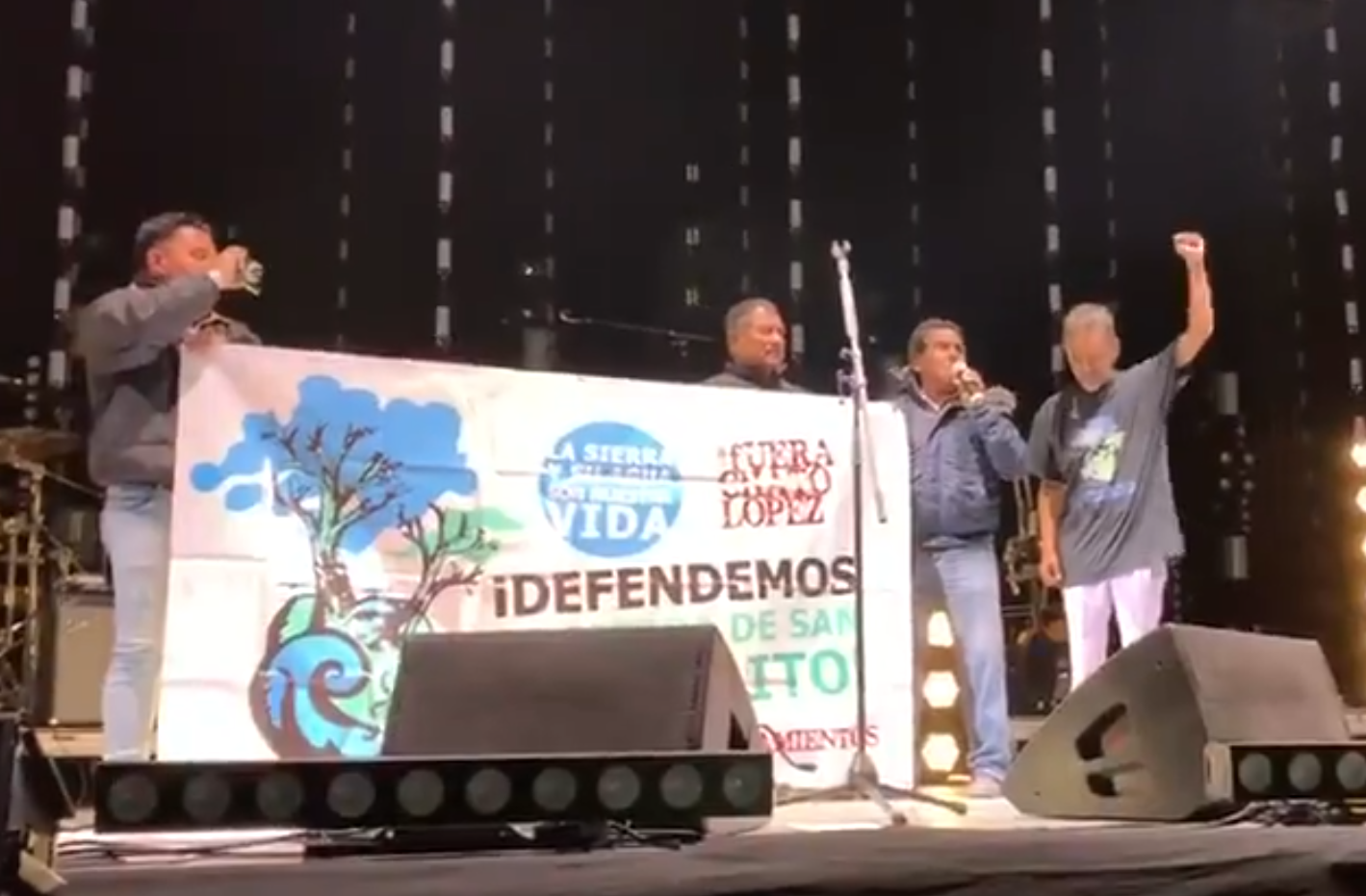 El vocalista pidió a los asistentes al concierto prestar atención a las palabras de estos activistas, quienes al tomar micrófono invitaron a los jóvenes y no tan jóvenes a informarse sobre la lucha que mantienen contra la depredación inmobiliaria a cargo del empresario Chato López, que busca a través de argucias legales el apoderarse de territorio de esa comunidad.