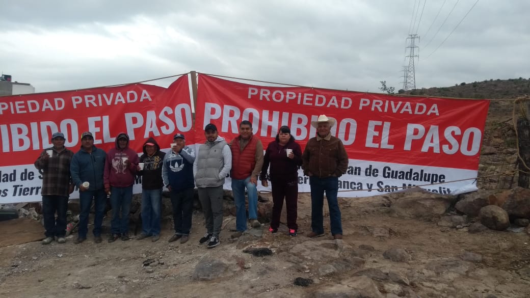 San Luis Potosí.- El pasado sábado, varios comuneros que buscan se pueda hacer cambio de uso de suelo de sus propiedades para vender a empresarios inmobiliarios, bloquearon los caminos hacía la Cañada del Lobo.