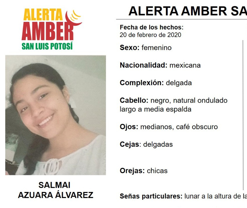Cualquier información sobre su paradero, favor de acudir a la FGESLP, en su edificio Central de Eje Vial 100, en la zona Centro de San Luis Potosí, o comunicarse a los teléfonos 444 812 49 61 y/o al 01800 7526237 lada sin costo.