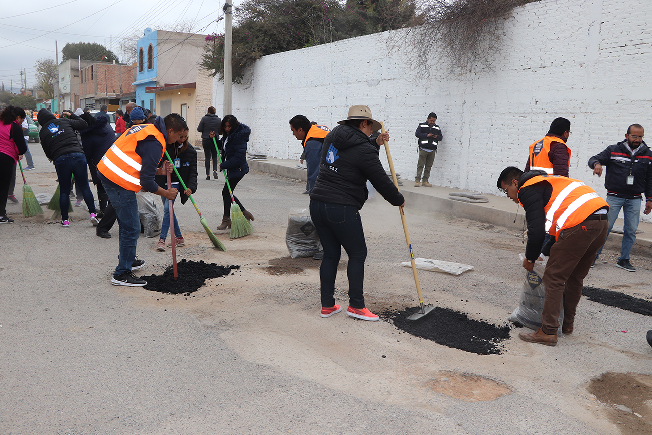 Trabajadores municipales, cadetes y agrupaciones sociales, colocaron 1 mil 370 costales de asfalto para tapar más de 650 baches