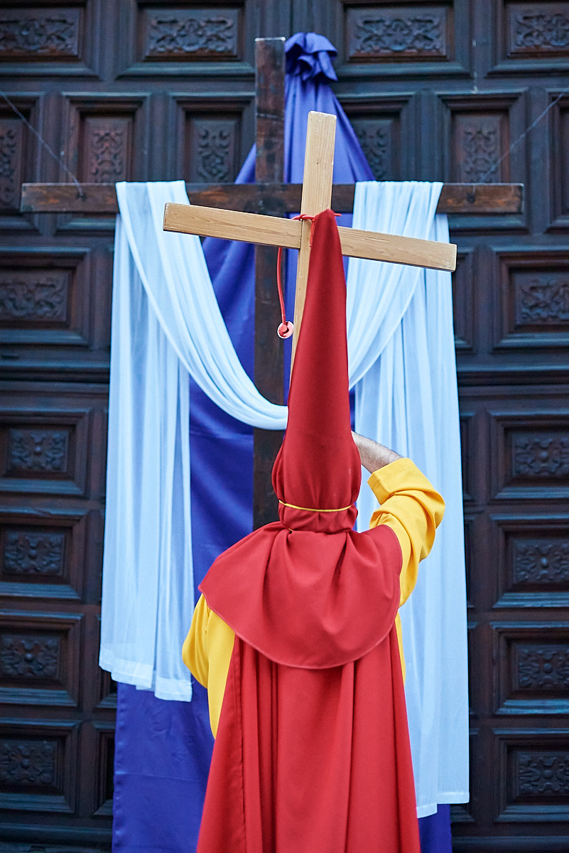 En esto punto el cofrade ya se había vuelto un espectáculo, decenas de personas se detuvieron para fotografiarlo o videograbarlo, turistas y locales murmuraban, pero nadie se podía explicar que pasaba, porque ese cofrade en soledad hacía esto y cargando en la cruz un estetoscopio.