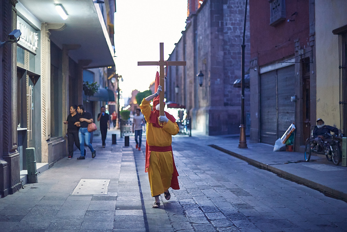Otros oficiales que se encontraban afuera de la Gran Logia del Potosí, ni se acercaron para fotografiarlo como lo hicieron sus primeros compañeros, desde lejos le grabaron y mandaron reporte por radio. Ahora poca gente de la Plaza del Carmen notó su presencia; todos se encontraban en sus propios asuntos como si ni una pandemia o un penitente existieran.