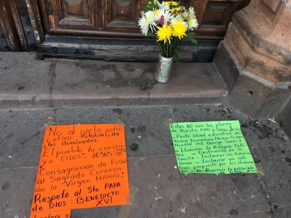 El mensaje principal de estos carteles es oponerse al “Pacto Global Educativo” que pretende celebrar el día 15 del mes de octubre de este año por parte del Papa Francisco.