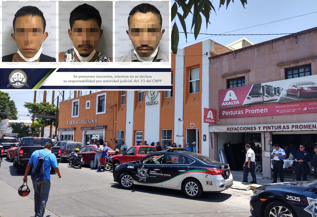 SLP. La Fiscalía General del Estado de San Luis Potosí (FGESLP) ejecutó órdenes de aprehensión en contra de tres hombres que presumiblemente agredieron con disparos de arma de fuego a un elemento de la policía capitalina hace unos días en calles del barrio de Santiago.