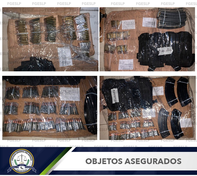 A los detenidos se les aseguraron 2 armas largas tipo AR-15 calibre 5.56 mm y un fusil de asalto calibre 7.62 mm, así como 22 cargadores abastecidos y cerca de 585 cartuchos útiles, entre otros objetos.