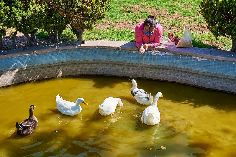 Los patos que se encuentran en la Alameda todavía están en peores condiciones. El agua está totalmente café y con un hedor a pútrido. Además la gente inconscientemente sigue lanzando basura al estanque.