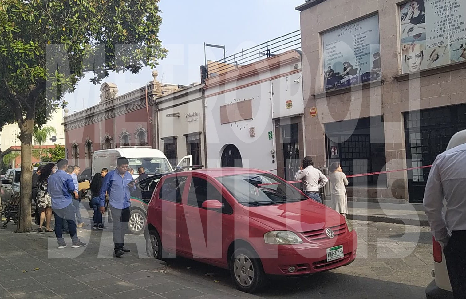 El reporte se dio cerca de las 8:00 hrs, en un negocio ubicado en el número 500 de la calle Venustiano Carranza, entre avenida Reforma y calle Simón Bolivar, en el Centro Histórico. El negocio que ofrecía artículos de belleza, también se trataba de una academia de belleza de nombre ” Axel y Mía”.