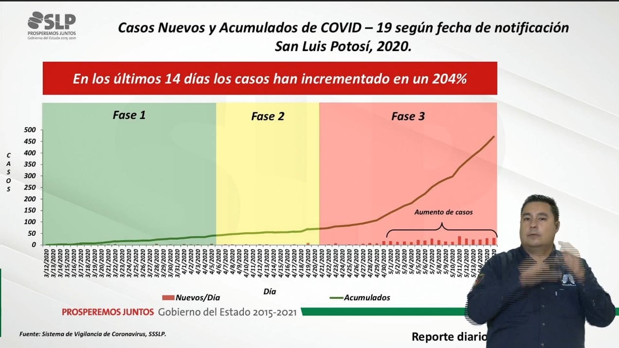 La secretaría de Salud, Mónica Rangel, indicó que en los próximos días se podrían registrar contagios diarios hasta por 50 nuevo casos por día, insistiendo que San Luis Potosí está en el momento más crítico de la pandemía y será hasta el mes de junio en el que se analice si se regresan a la normalidad las actividades.