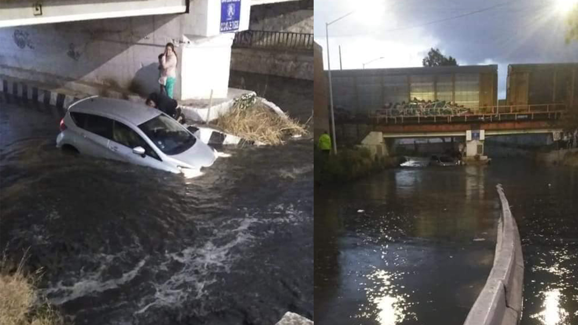 Se trata de una familia que quedó atrapada, dos adultos y un menor de edad quienes salieron del vehículo y se subieron a uno de los pilares del puente. Personas de Protección Civil Municipal apoyó con el rescate, logrando poner a salvo a las personas y tras una revisión médica, se encontró que se encontraban en buena salud.