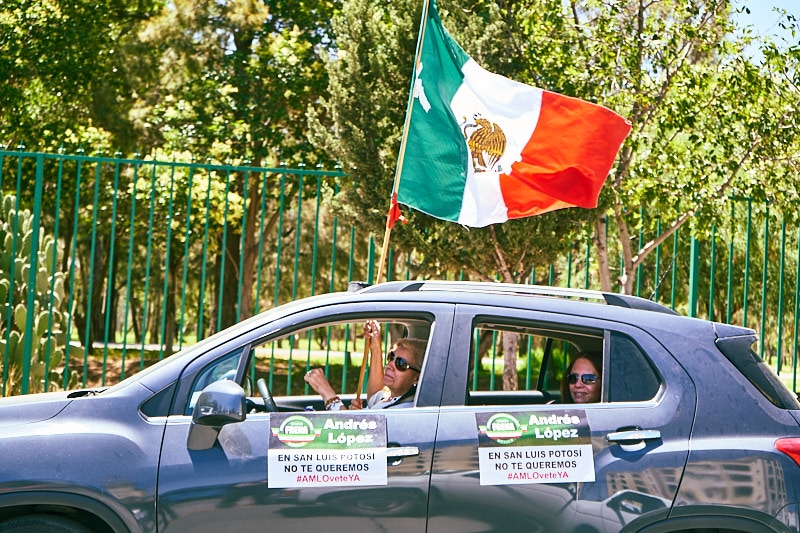 San Luis Potosí.- Esta tarde el  Frene Nacional AntiAMLO realizó la segunda caravana en la ciudad con motivo de pedir la dimisión del presidente de la República, Andrés Manuel López Obrador.