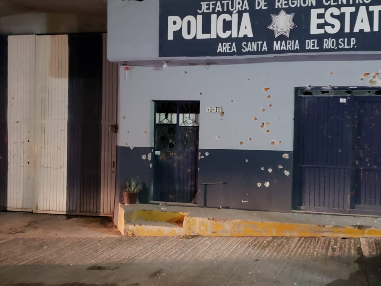 SLP.- La madrugada de este viernes fue baleada la fachada de la comandancia del a Policía Estatal ubicada en la cabecera municipal del Santa María del Río.