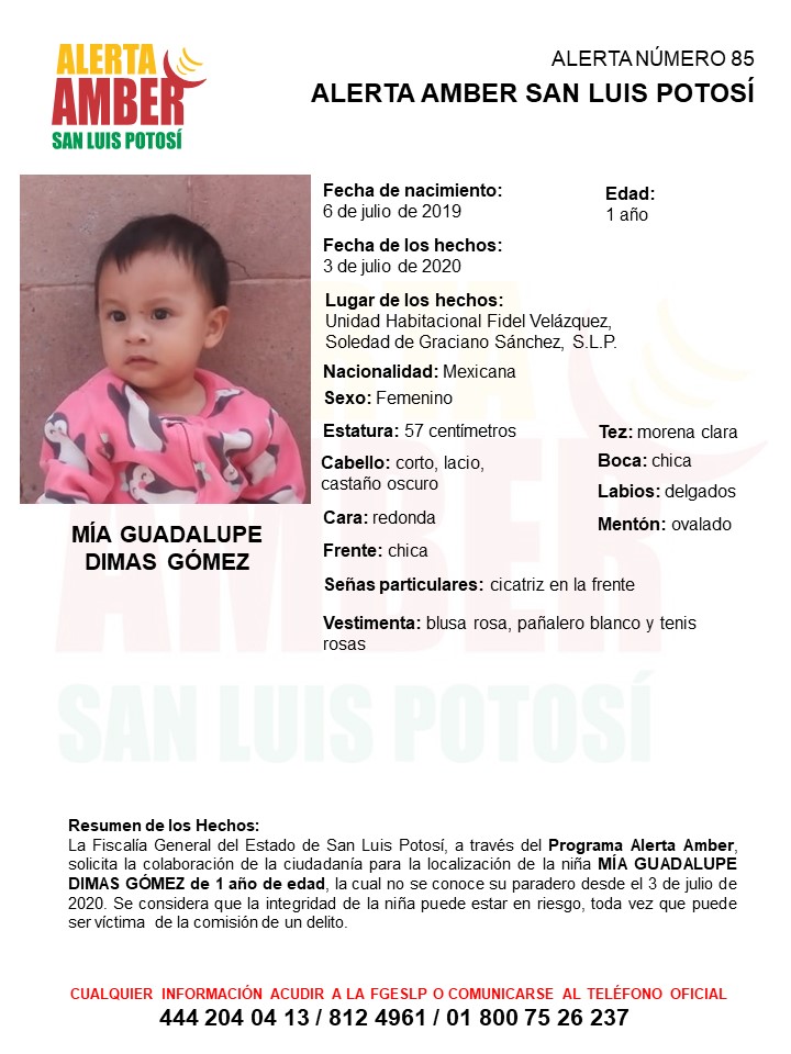Fue la Unidad Estatal de Alerta Amber quien recibió la denuncia de la abuela materna de la víctima la tarde del pasado 6 de julio del 2020, quien alertó sobre la no localización de una mujer de 18 años y su hija de 1 año de edad, con quienes no lograban tener contacto desde el viernes 3 de julio del 2020.