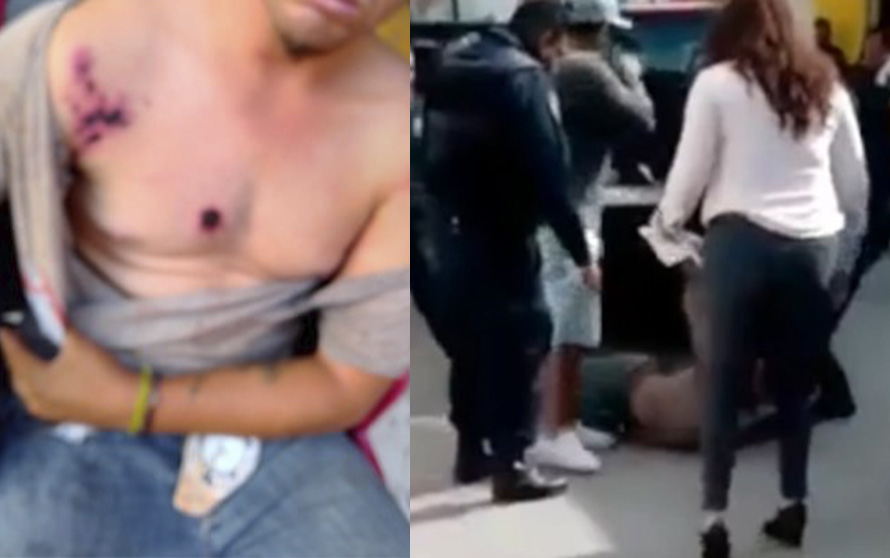 El joven al encontrarse asustado por la situación que se dio intempestivamente intento defenderse, pero los oficiales comenzaron a golpearlo, inclusive uno de le disparó con una escopeta con balas de goma.