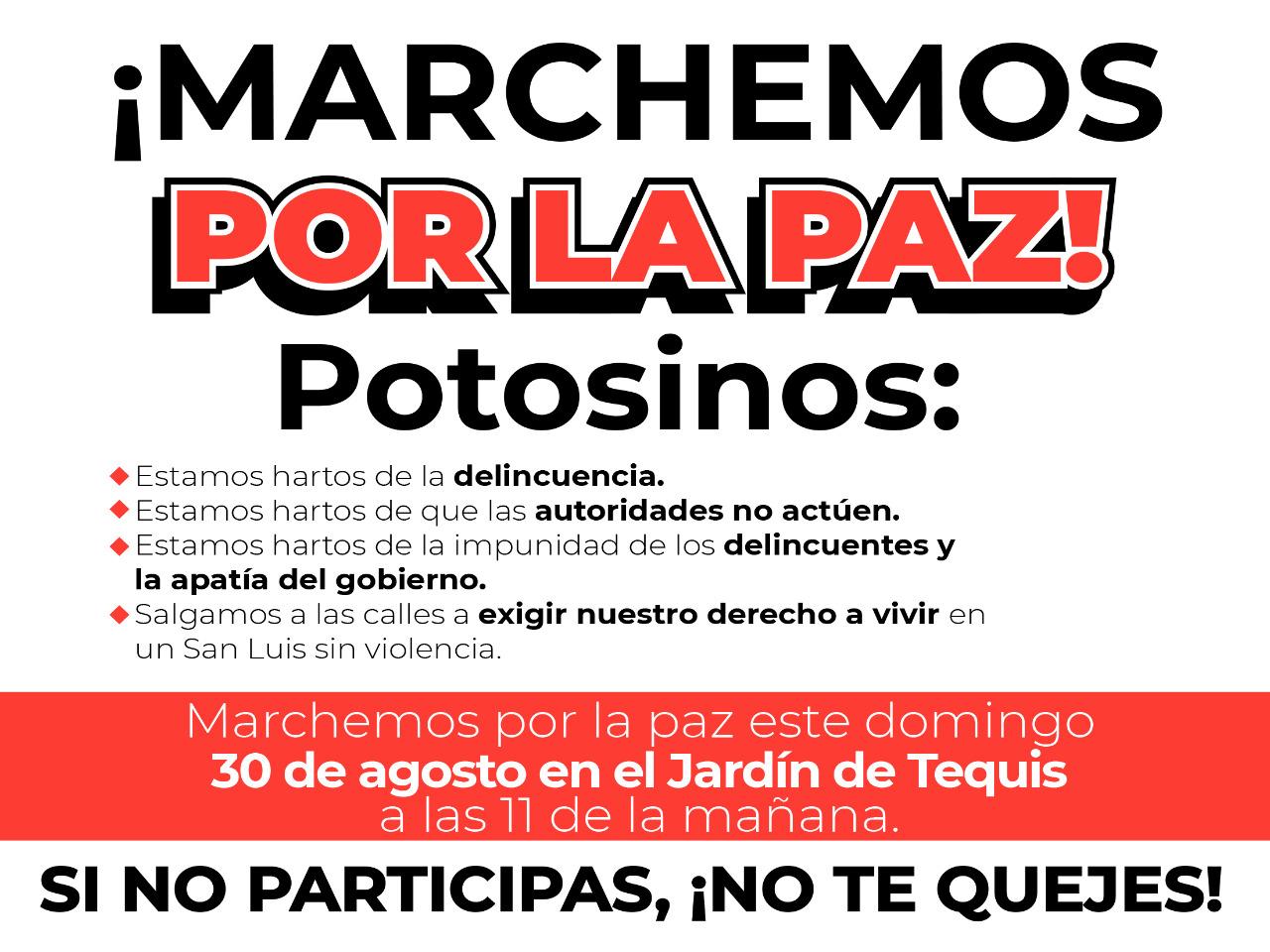 En el video, Silva le solicita a los habitantes de la zona metropolitana de San Luis Potosí que salgan y se unan a esta marcha para exigirle a los servidores públicos que nos garanticen el derecho de vivir en un estado sin inseguridades.