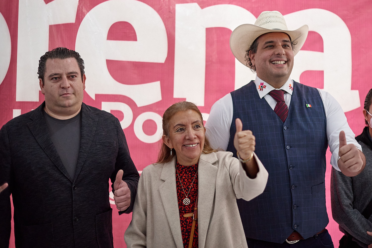 Más tarde se presentaron 3 de los 5 pretendientes a esta candidatura por morena: Antonio Lorca, Francisca Reséndiz Lara y Adrián Esper, los cuales en conjunto emitieron un mensaje de unidad y civilidad dentro del proceso para elegir al candidato y celebrando la decisión tomada en el CEN de MORENA el día de ayer de no ir en coalición con PVEM.