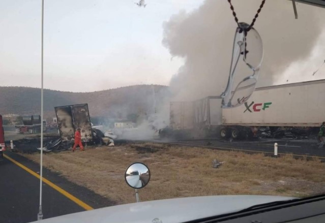 Trailero muere calcinado en carambola en Carretera Matehuala