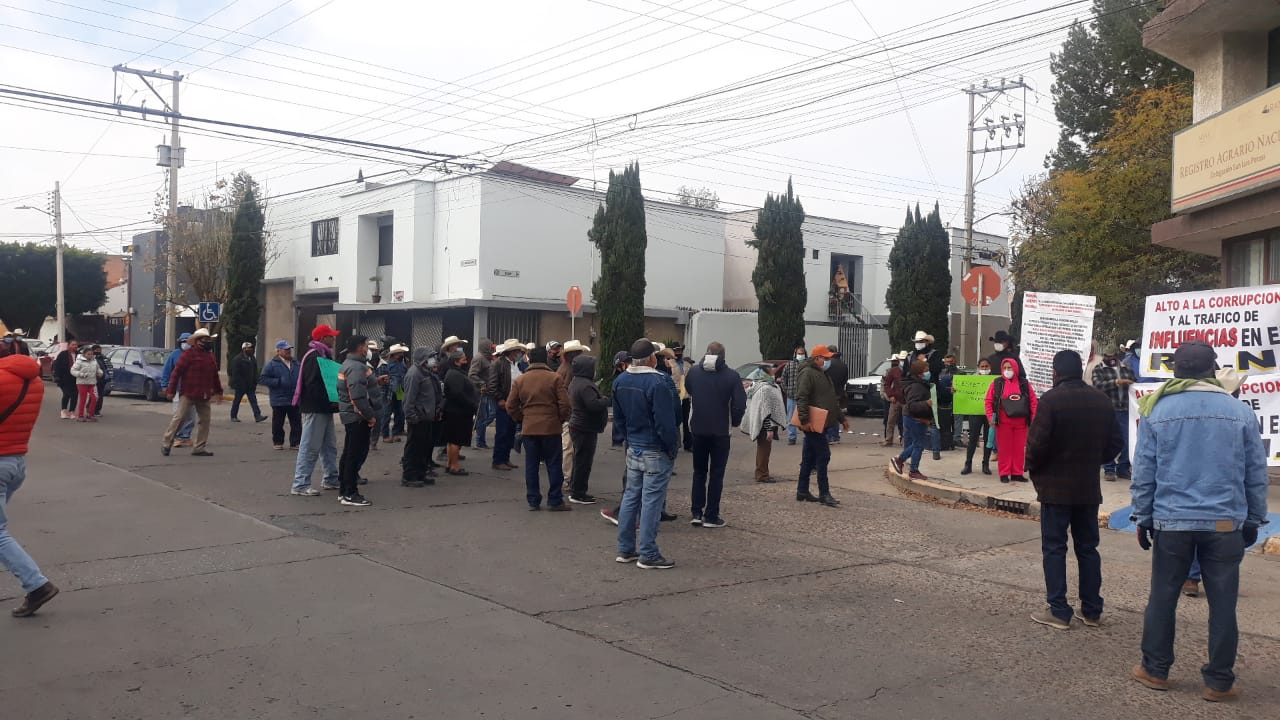 Frente a las oficinas del RAN, en la calle de Juan de Oñate y SCOP los quejosos expresaron su inconformidad y  acusaron al organismo de avalar la existencia de falsos comuneros para la realizaron de falsas asambleas y así dilapidar sus tierras.