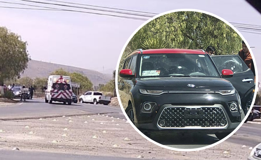 San Luis Potosí.-Poco antes de las 12:00 del medio día, se registró un ataque armado contra una camioneta Kia que circulaba sobre el camino a La Presa de San José a la altura del Periférico.