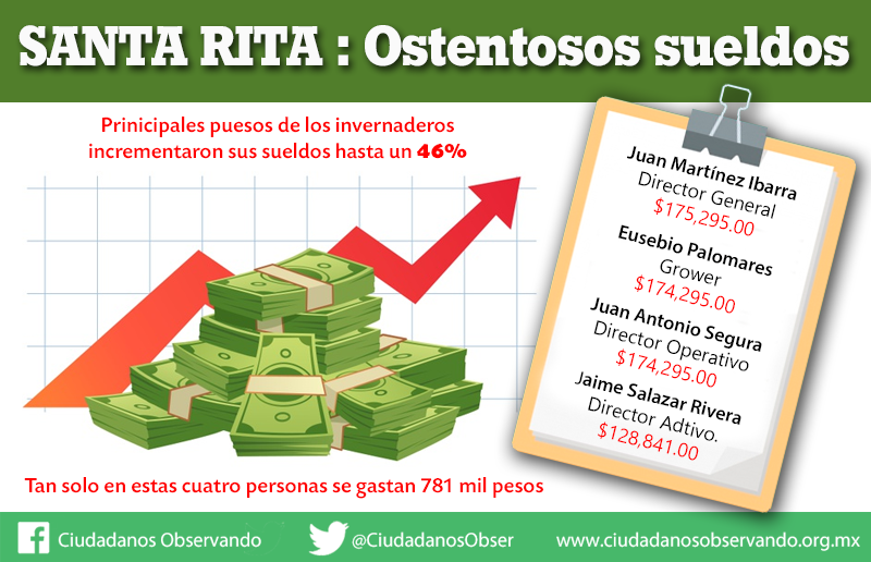 Ciudadanos Observando denuncia que históricamente los invernaderos han sido una caja chica del mandatario en turno y las utilidades que se publican son sumamente inferiores al dinero que realmente se genera. La opacidad, abuso y corrupción han sido los sellos de Santa Rita.