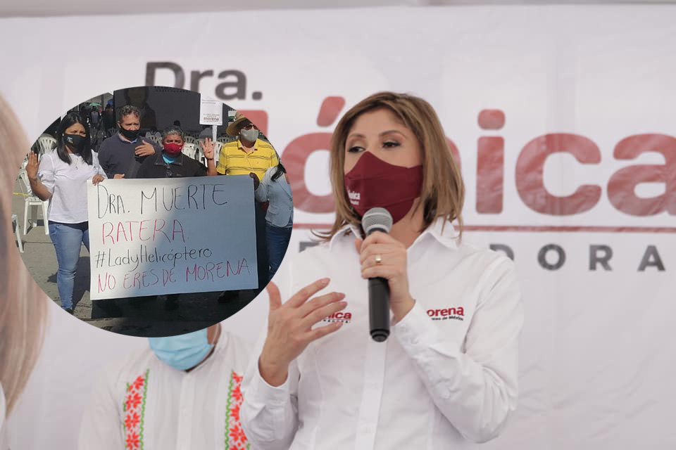 Se tenía programado un mitin en la plaza principal del municipio, su segundo evento dentro de la campaña que arranco la madrugada de hoy en la Plaza del Carmen. Sin embargo previo a celebrarse el evento se apostaron algunas personas con mensajes como “Dra. Muerte Ratera” y “Mónica MORENA ¡no te queremos!”.