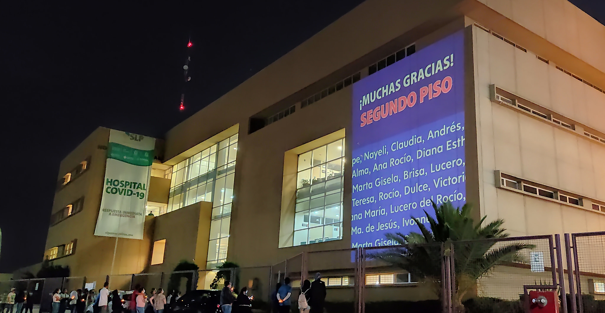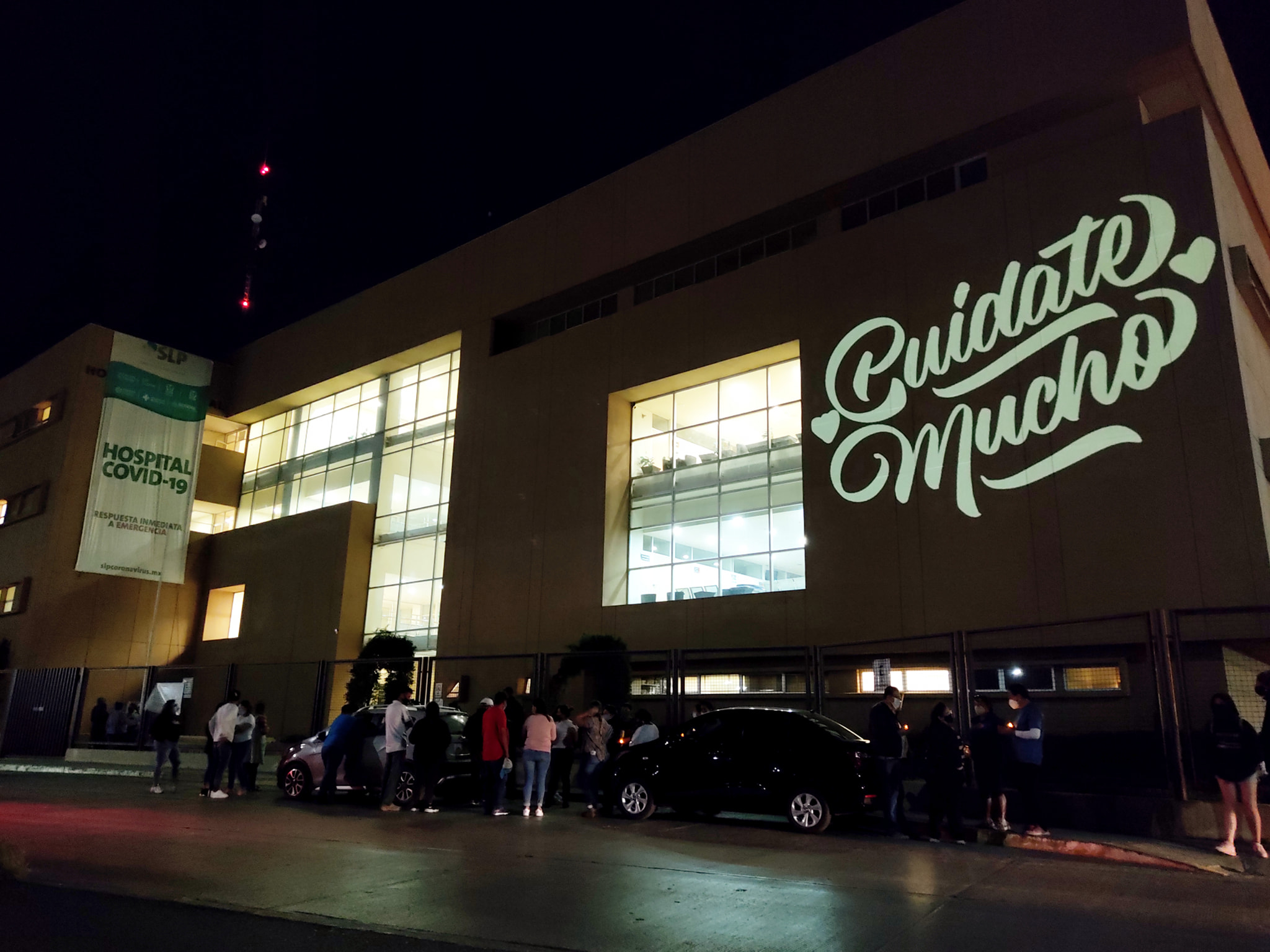 El colectivo Sr.Crisis realizó una proyección en el Hospital de Soledad de Graciano Sánchez, en apoyo a las personas enfermas y al personal médico que combate en primera línea la contingencia sanitaria del Covid-19.