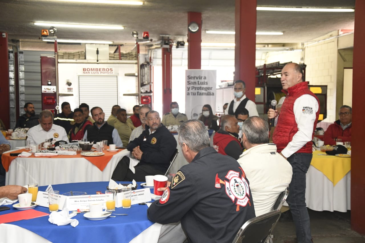 El Comandante Adolfo Benavente Duque dio la bienvenida y presentó a los personajes destacados que estuvieron presentes en la reunión, como el Jefe de División, Francisco Benavente, y el miembro fundador, Jorge Benavente. Recordó que el cuerpo de bomberos fue fundado hace casi 70 años, y desde entonces presta un servicio fundamental a la población potosina. Fue a iniciativa de la Cámara Nacional de Comercio, en 1949, con el objetivo de cubrir las emergencias, y gracias un primer donativo del presidente de la República, Miguel Alemán Valdez.